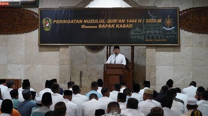 KLIKSURABAYA.CO.ID –Kepala Staf Angkatan Darat (Kasad) Jenderal TNI Dr. Dudung Abdurachman menghadiri peringatan Nuzulul Qur’an 1444 H/2023 M sekaligus memberikan Ceramah Hikmah Nuzulul Quran dan menjadi imam shalat Tarawih.
