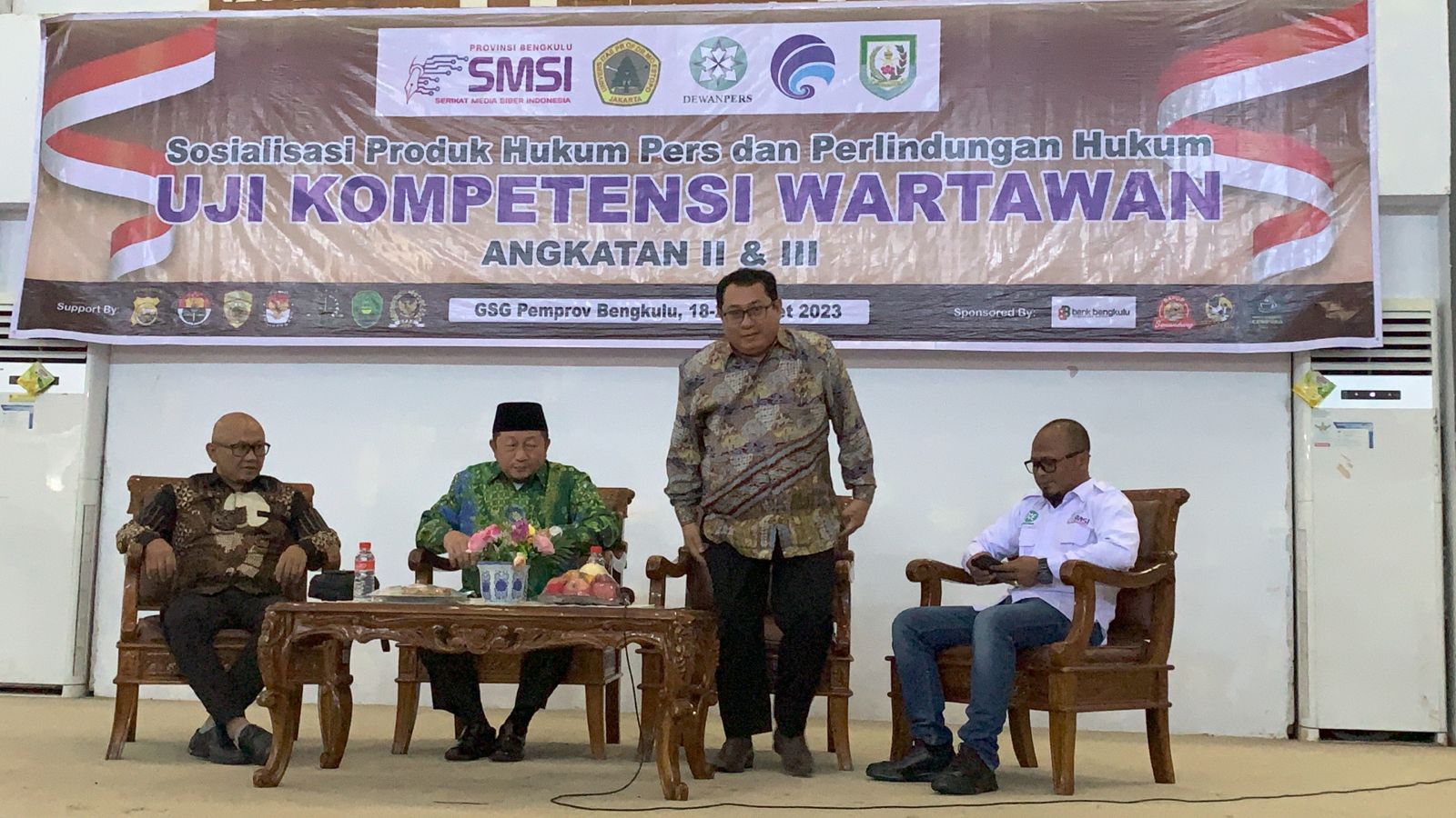 Hadir dalam UKW ini antara lain Dekan FIKOM Universitas Prof Dr Moestopo (Bergama) HM Saifullah, MSi, dan Asisten II Setda Provinsi Bengkulu Fahriza Razie yang mewakili gubernur membuka UKW, Ketua SMSI Provinsi Bengkulu Wibowo Susilo, dan Ketua Persatuan Wartawan Indonesia (PWI) Provinsi Bengkulu Marsal Abadi.